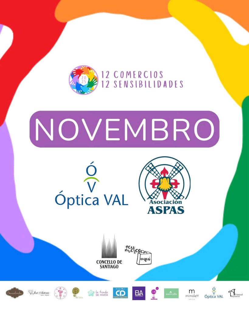 Con novembro, chegamos ao penúltimo mes da campaña 12 comercios 12 sensibilidades 2025 con dúas novas entidades como protagonistas: Óptica Val e a Asociación ASPAS.